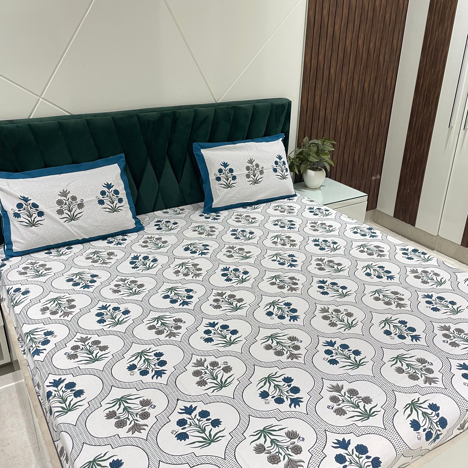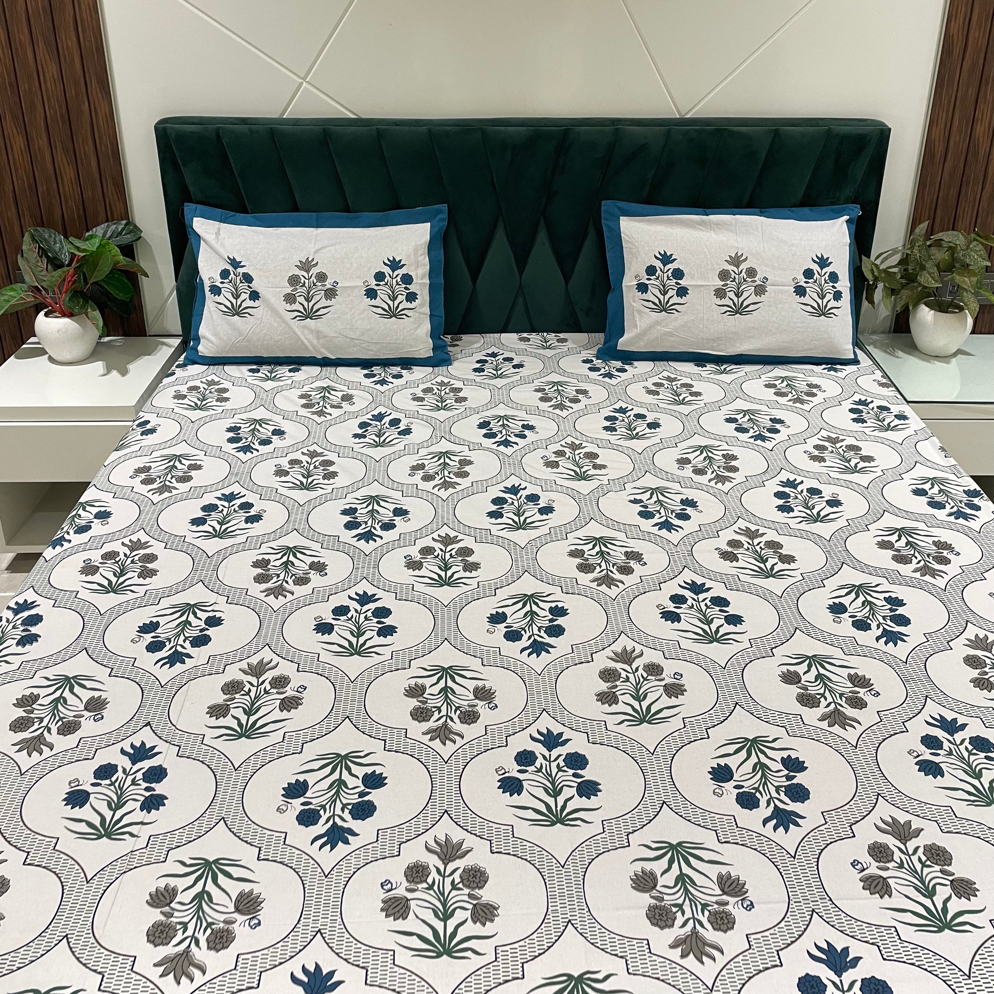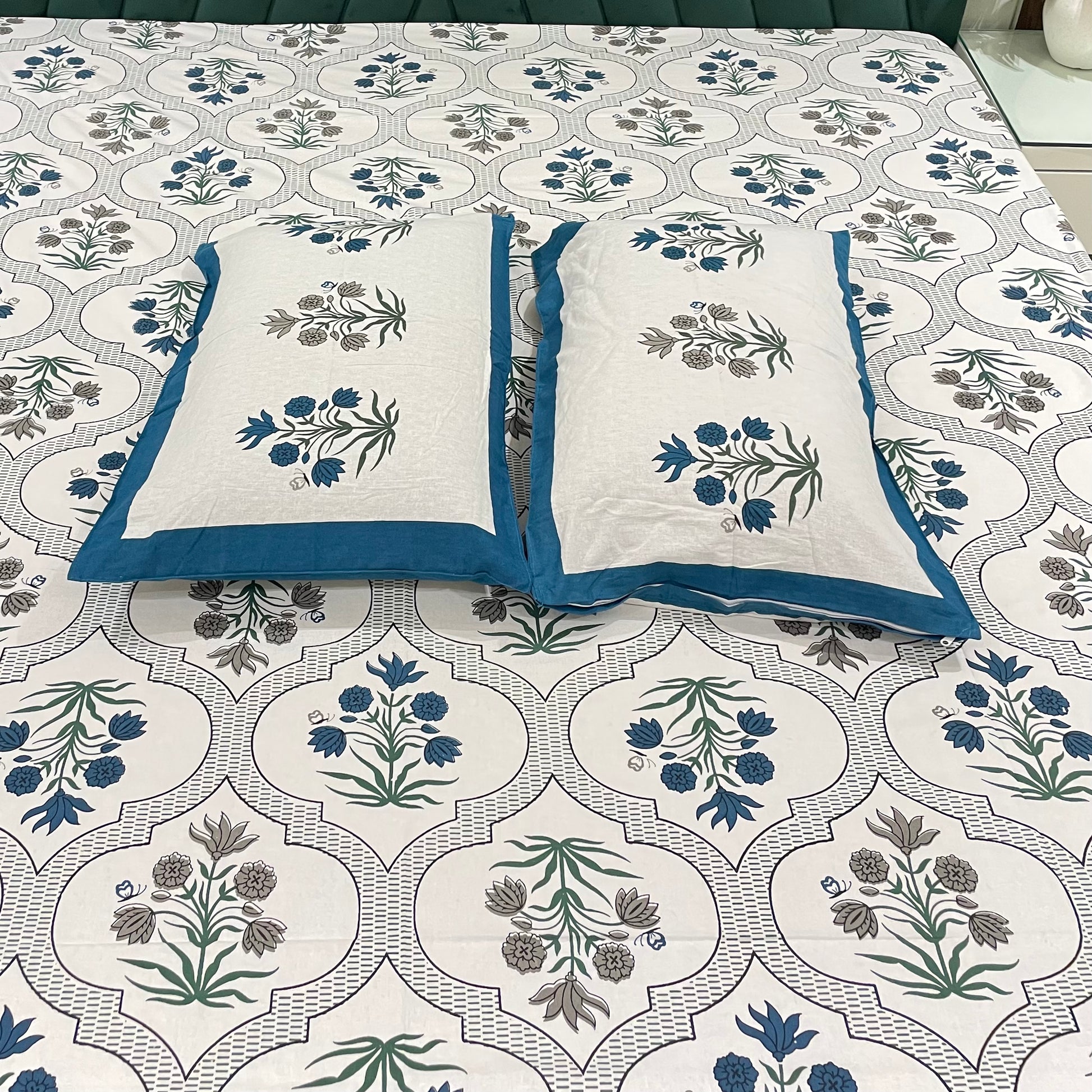Design : Navy Blue Color Floral Bunch with Light Grey Color Floral Bunch Abstract Pattern with Navy Color Borders on Pillow Covers