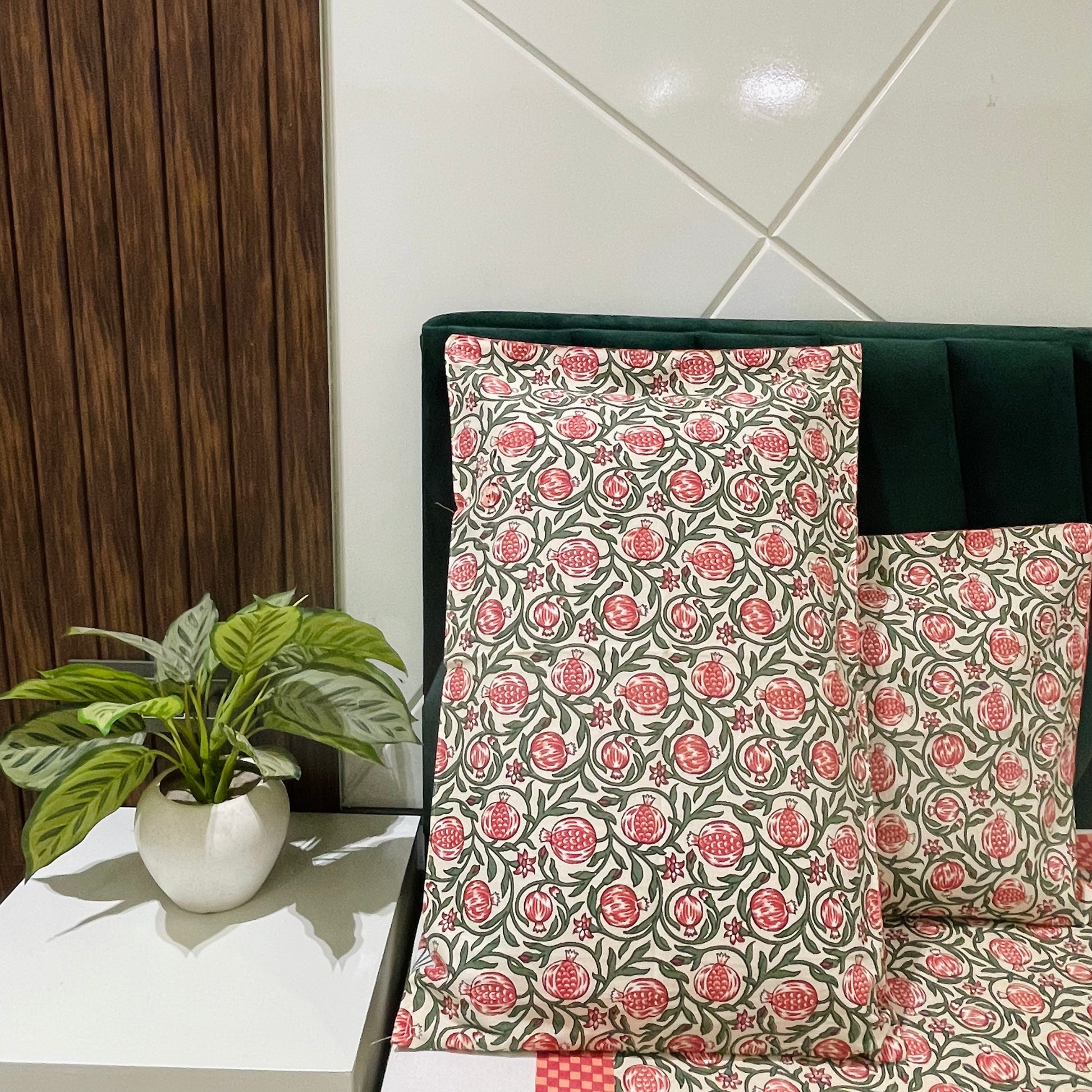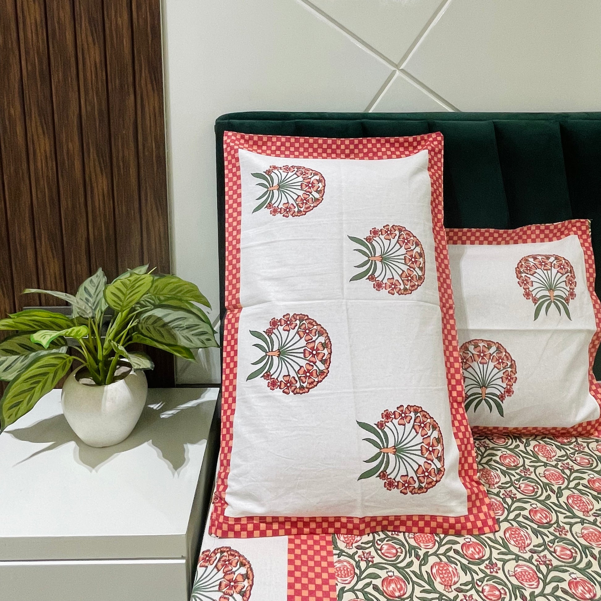 Color : White Base with Light Red Abstract Pattern and Floral Embroidery at the end with Co-ordinated Pillow Covers