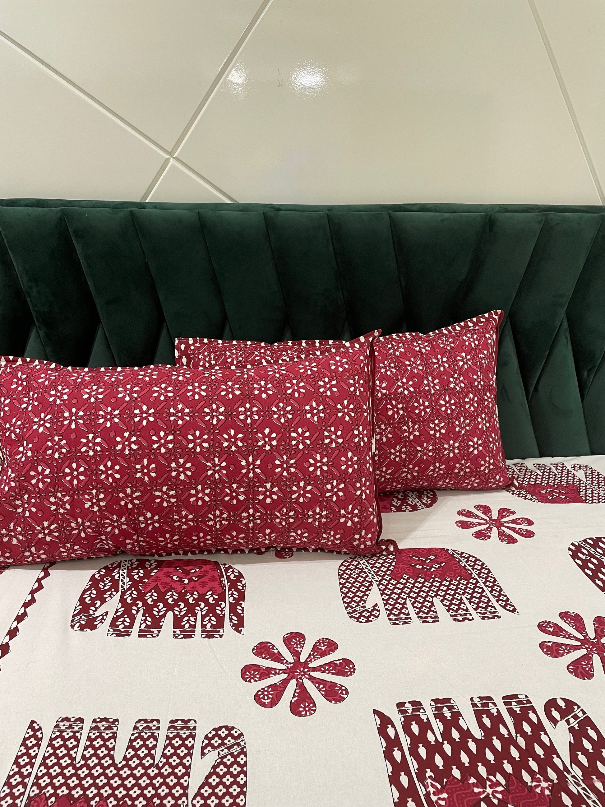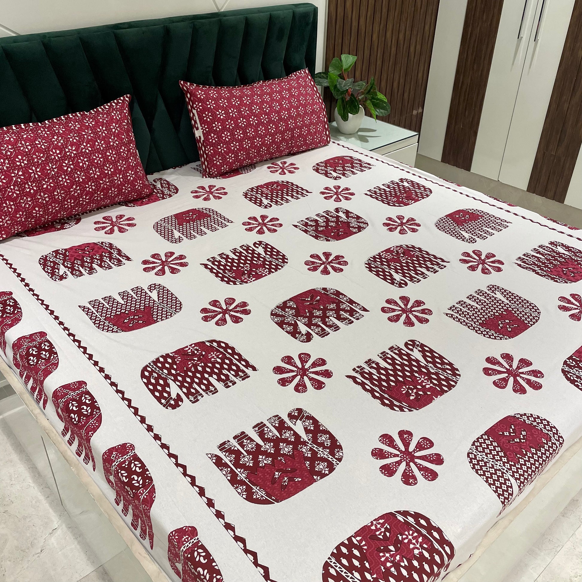 Design : White and Mehroon Elephants and Floral Pattern with Mehroon Elephants on the Corner