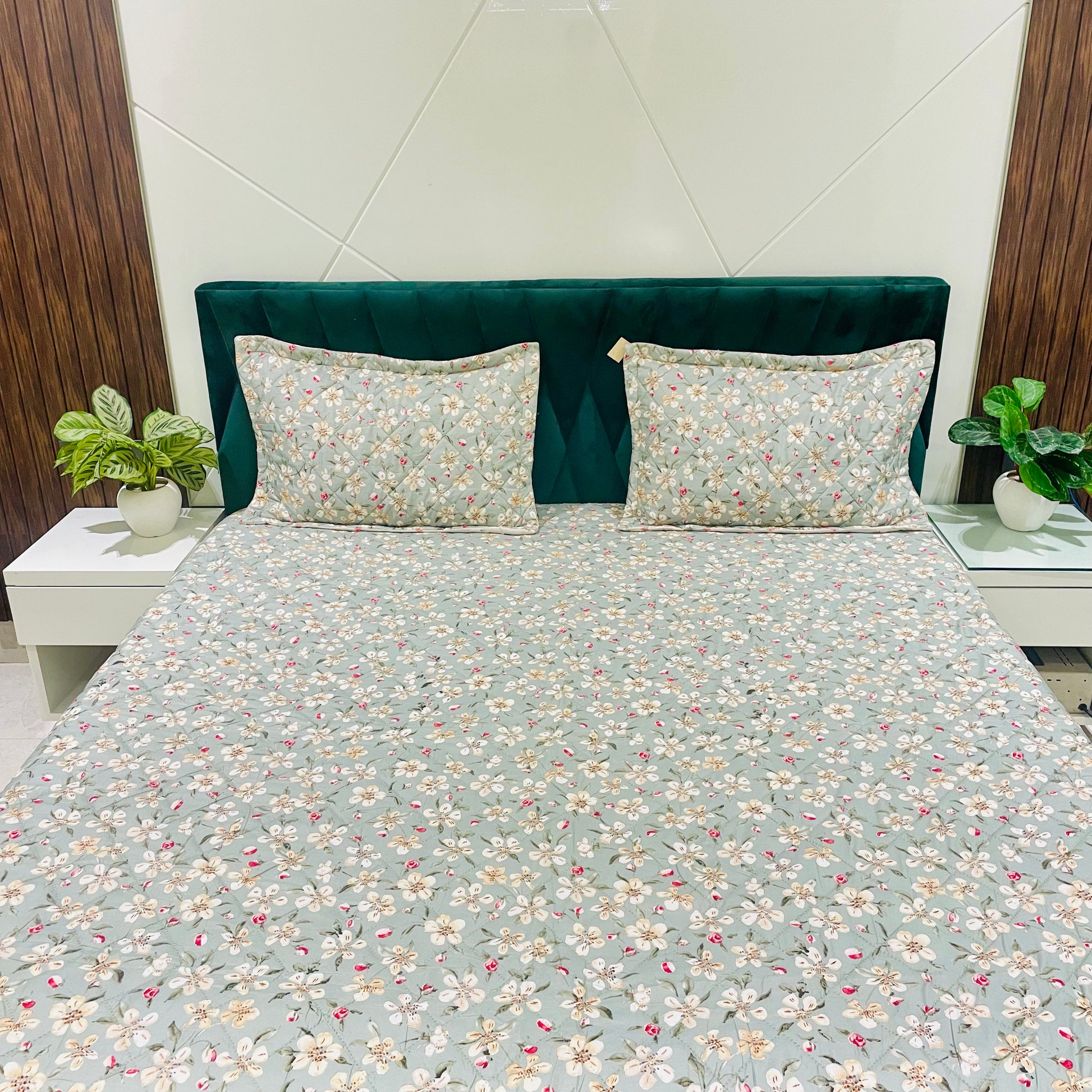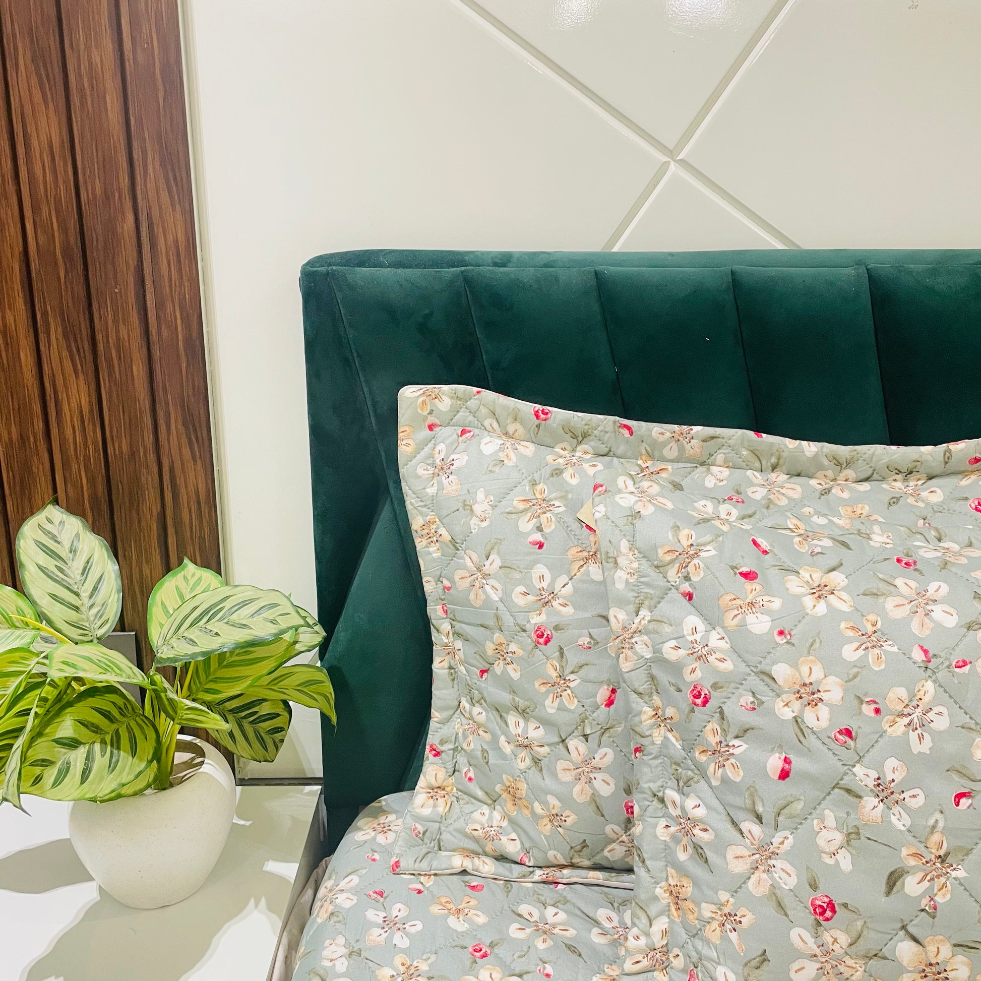 Design : Light Green Color with Small Floral Pattern and Co-ordinated Pillow Covers