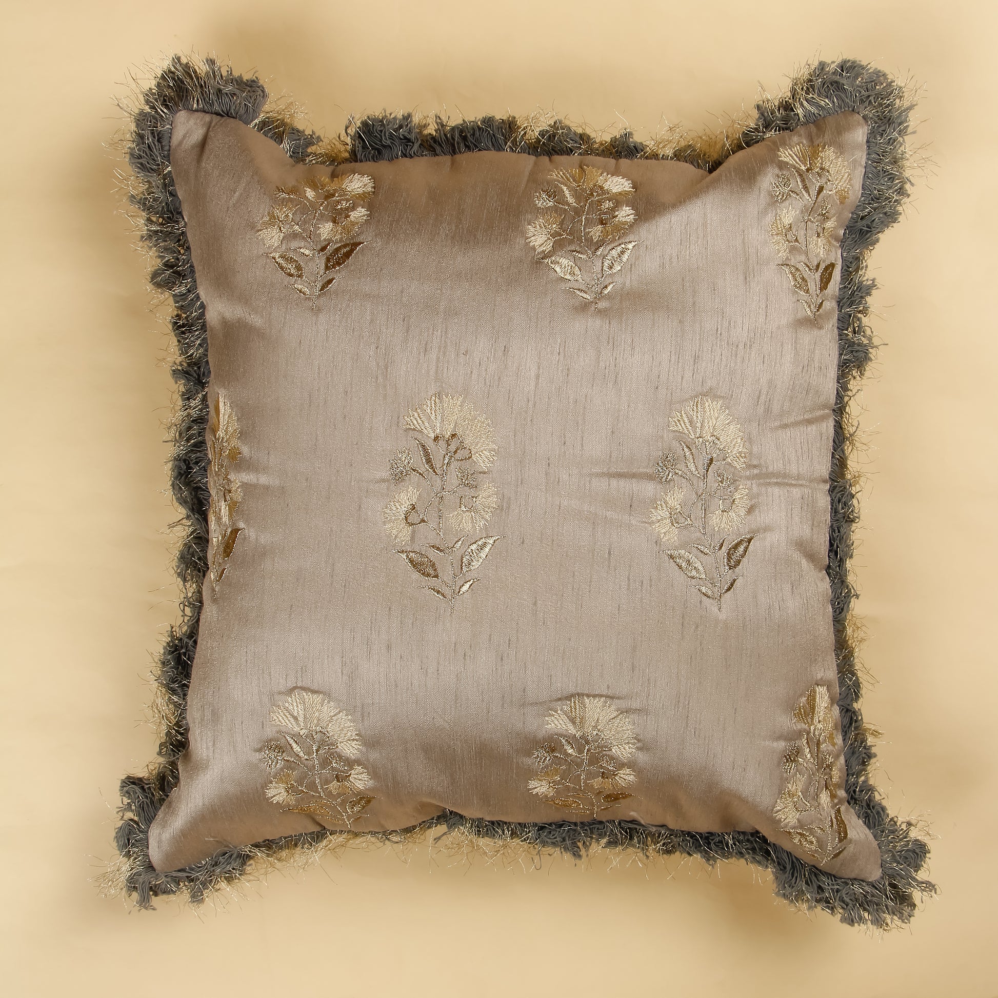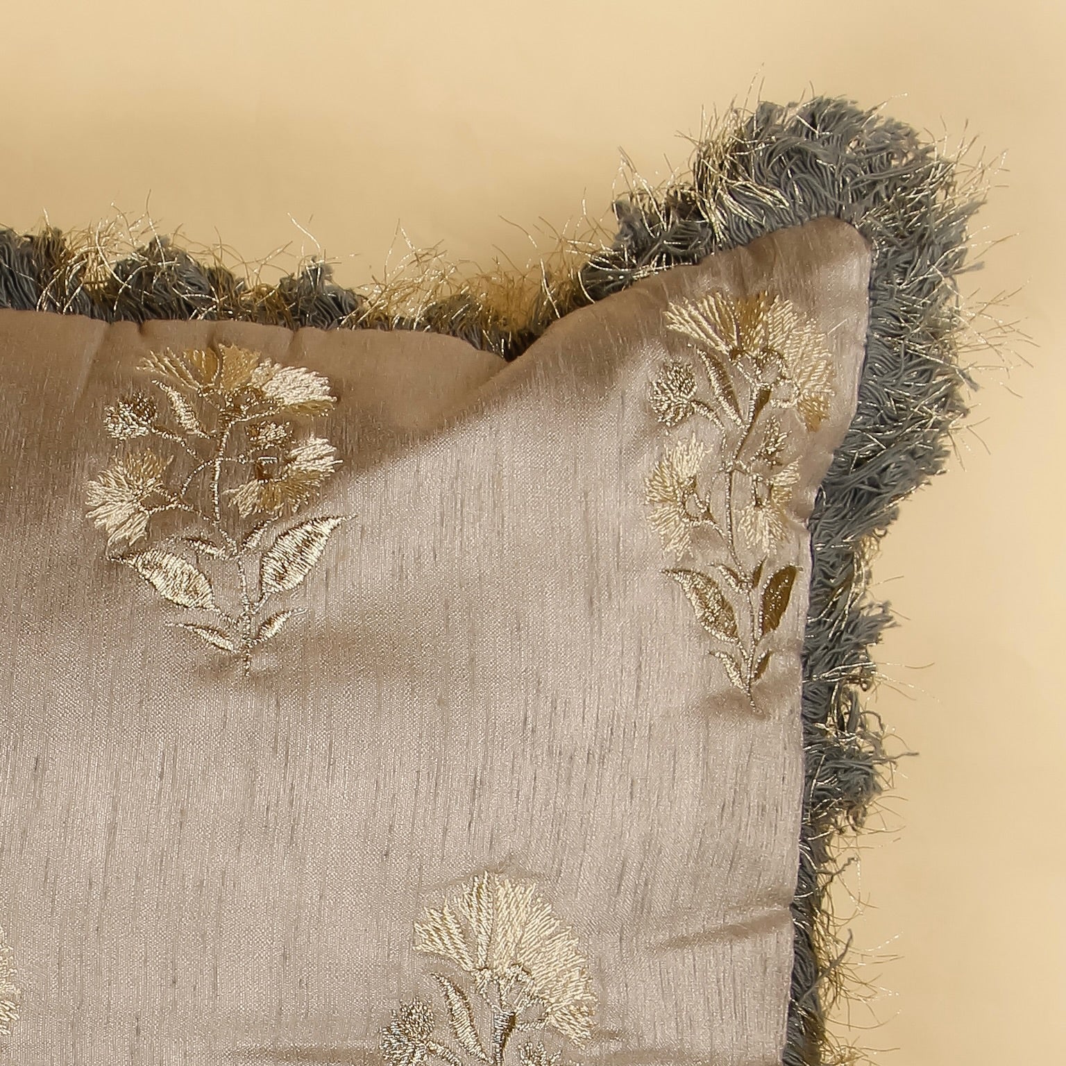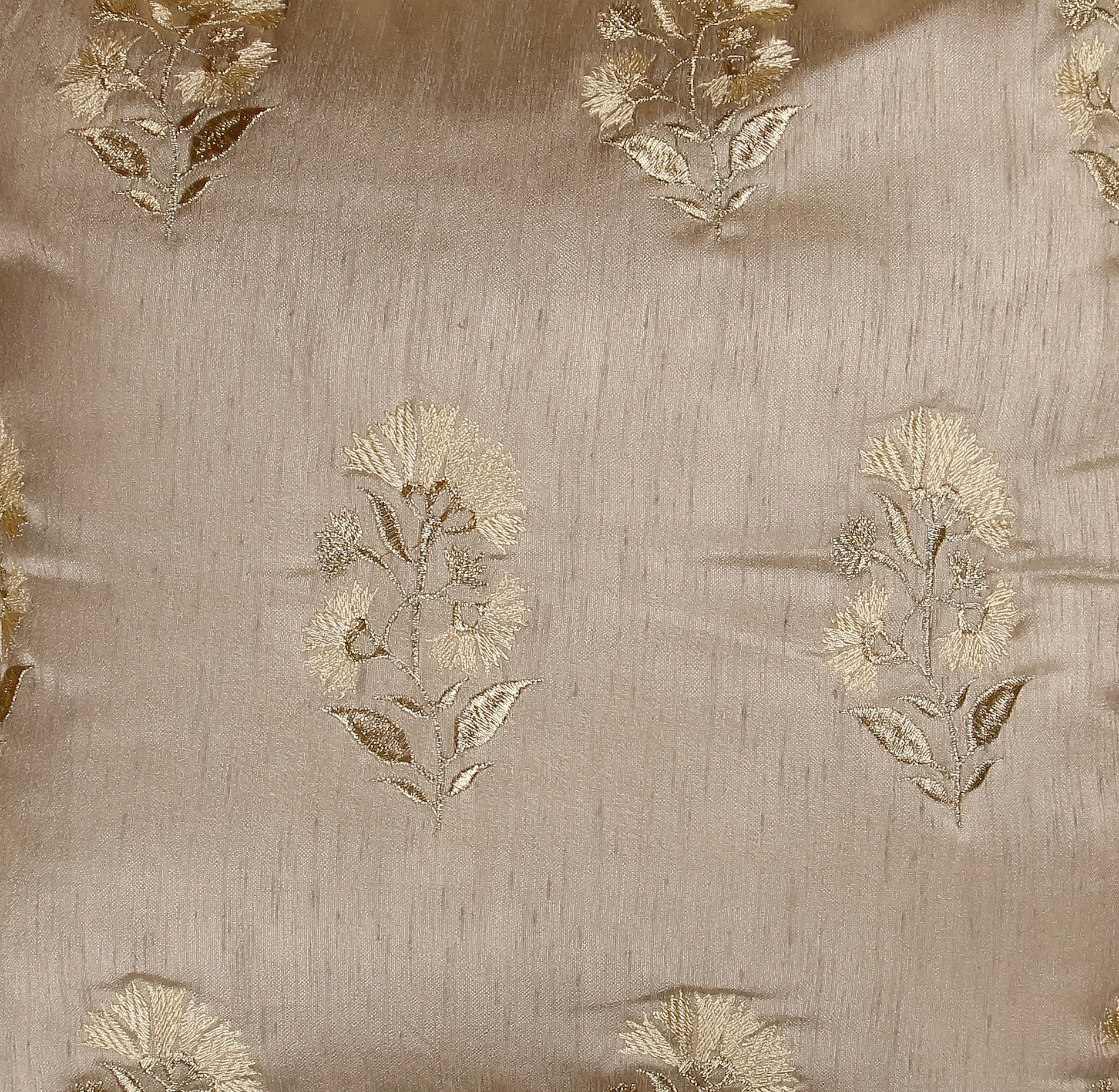 Pattern :Copper with Golden floral bunch pattern and frills on the corner on Silk Fabric